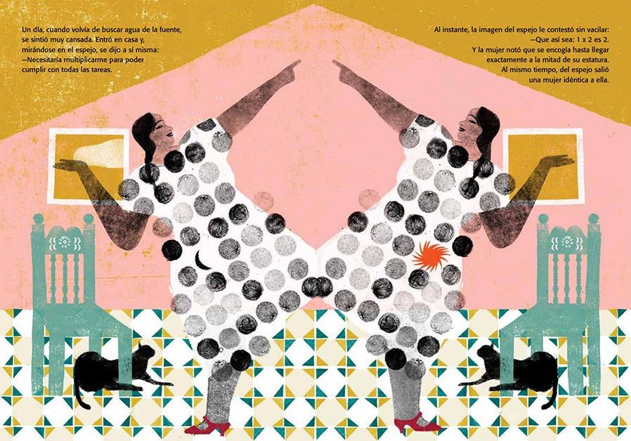 En un pueblo, una mujer alta y robusta trabaja sin descanso: cultiva, cuida los animales, alimenta a los niños y limpia la casa. Y como es tan fuerte, también ayuda a todos sus vecinos. Un día, agotada por la sobrecarga de tareas, desea multiplicarse. Y así lo hace: de pie frente al espejo, surge una mujer idéntica a ella y ambas emprenden el trabajo. Una tras otra, se crea un ejército de mujeres idénticas, cada vez más pequeñas.